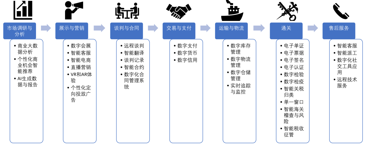 数字技术对国际贸易的影响与赋能应聚焦研究场景应用、案例开发、统计估算、实证检验、模拟预测,解析其作用机制与效应规模。