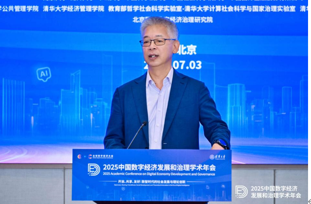 2025年7月3日,2025中国数字经济发展和治理学术年会在清华大学成功举办。本届学术年会以“开放、共享、友好:数智时代的社会发展与理论创新”为主题,依托全球数字经济大会,汇聚国内外数十位顶尖专家学者、智库机构及产业代表发表演讲与交流,探索数智时代如何通过开放与共享,推动数字友好合作,并在实践中实现数字经济理论创新。三十多位专家学者和业界代表出席并发言,四百余人参加线下会议,超十万人次观看了大会实况。